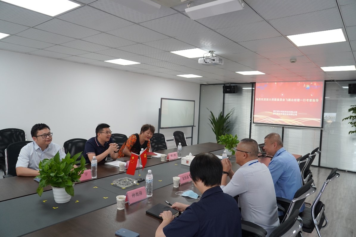 9月7日下午,浙江大学控股集团总经理余飞鹏一行莅临彩神体育官方在线入口(以下简称:浙大彩神(中国))调研指导,公司董事长朱坚磊、总经理徐雷等领导陪同接待。